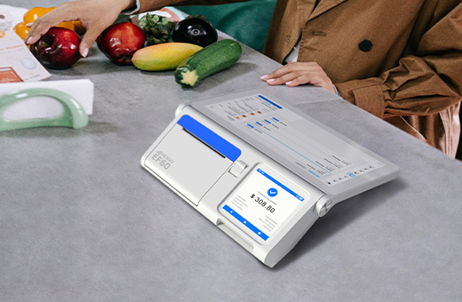 El EF60 es un mini ECR inteligente de alto rendimiento con una arquitectura de producto única e innovadora. La EF60 ofrece una doble pantalla, impulsada por el último procesador de cuatro núcleos, que ejecuta Android 11, y está equipada con 4 GB de RAM + 64 GB de memoria ROM. Puede adaptarse a diversos entornos minoristas, ya sea en una caja tradicional o en un entorno de autoservicio.