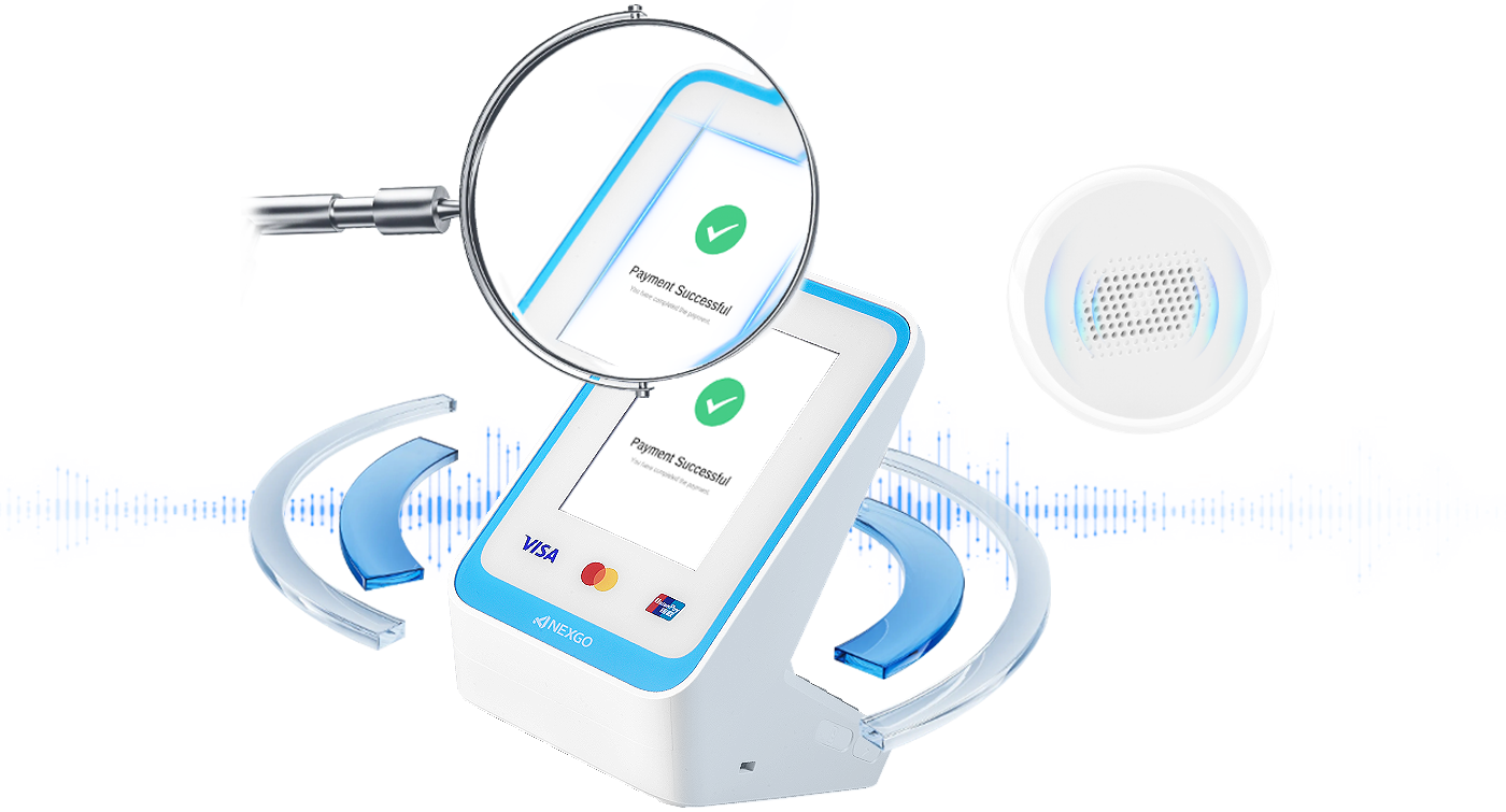 Loud voice prompts and clear color display provide instant transaction feedback — enhancing trust and preventing fraud.