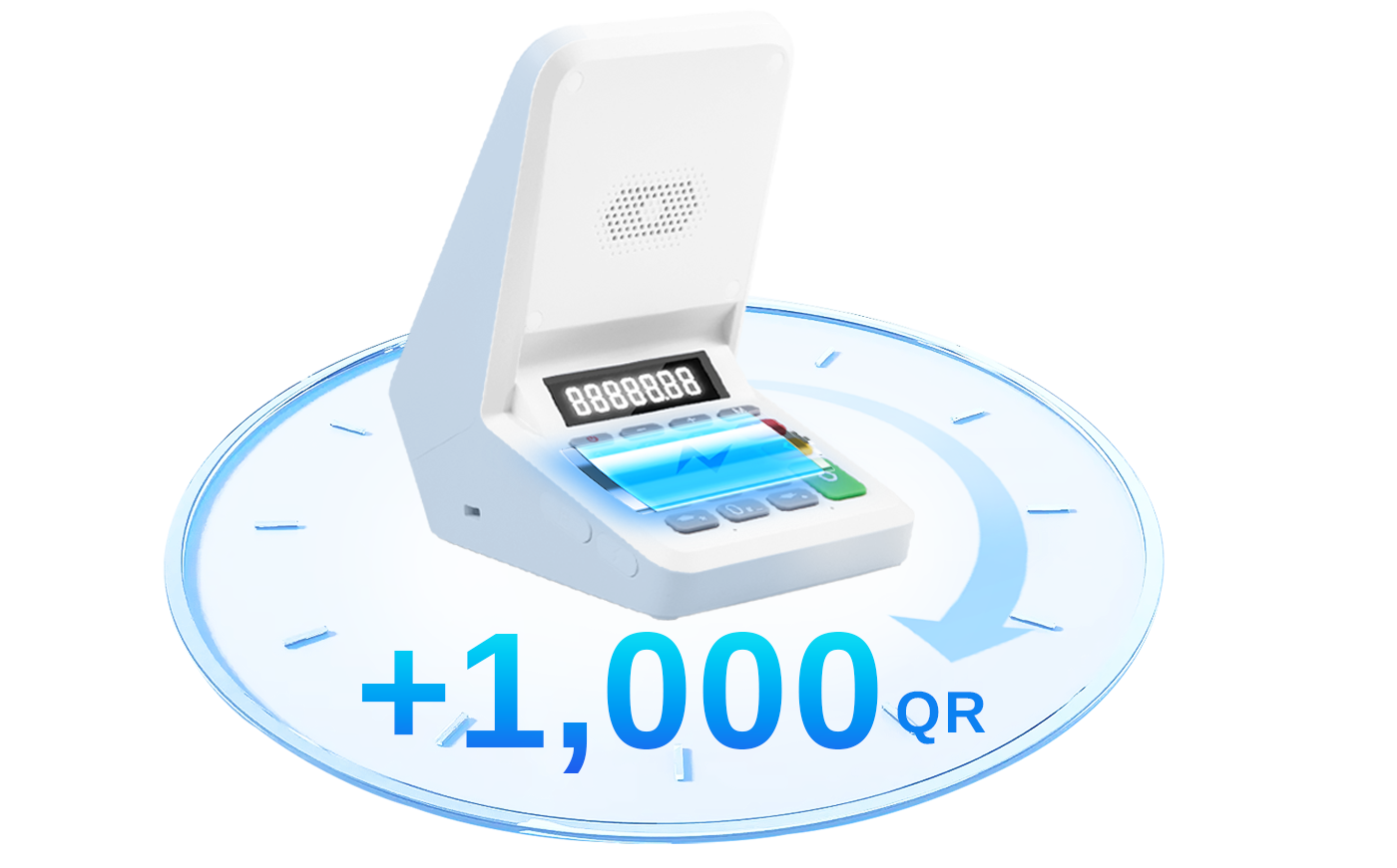 ·Screen stays on for over 48 hours. ·Supports 1,000+ QR transactions and 500+ NFC transactions with voice confirmation per charge.
