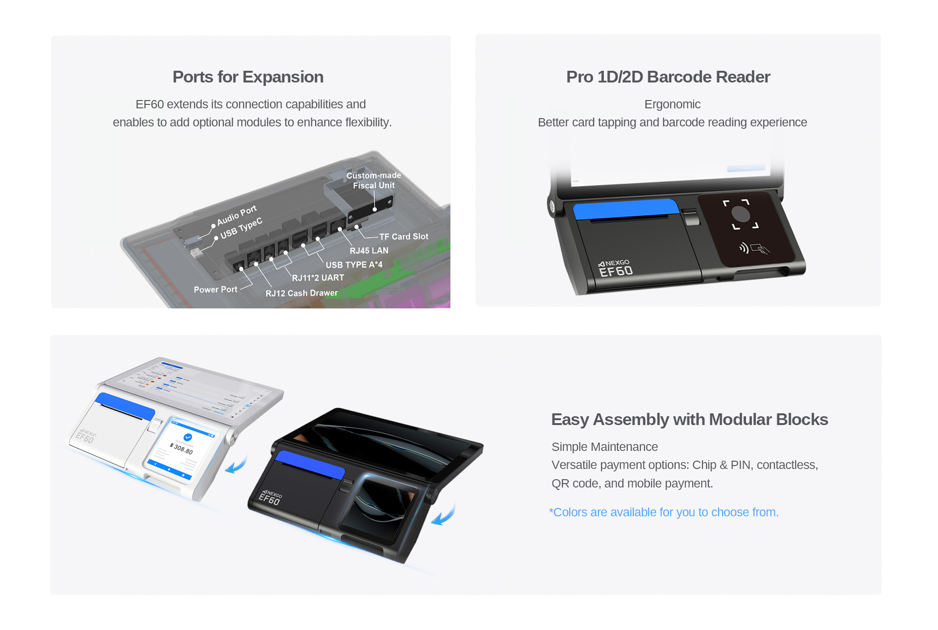 One for Yor Merchant, One for the Customer.10.1'' IPS touch-screen with a wider viewing angle, EF60 transforms a more accurate color reproduction.